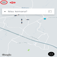 Pertama: Buka Aplikasi Uber Rider Anda, selanjutnya klik menu Navigasi sebelah pojok kiri atas aplikasi Uber.